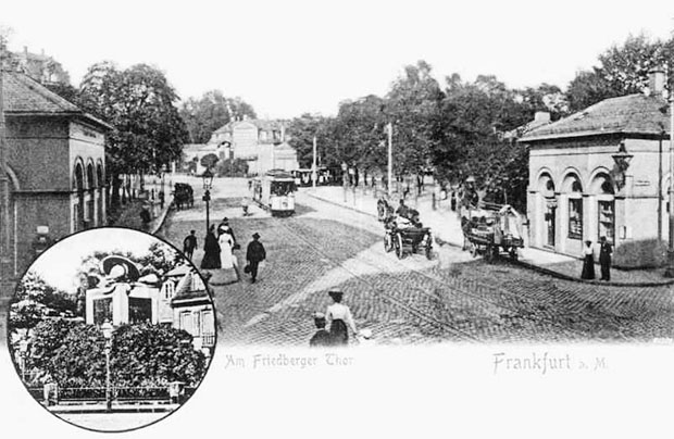 Die beiden Torhäuser standen noch und am Eingang des Bethmannparks stand noch das Hessendenkmal.